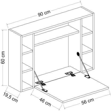 Le bureau est idéal pour supporter votre ordinateur portable, tandis que la bibliothèque intégrée garde vos livres et autres objets à portée de main. Le bureau d’ordinateur mural est peu encombrant grâce à sa conception pliante.