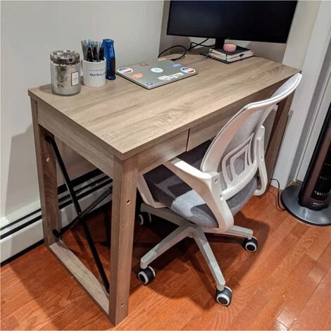 - Hand-applied durable laminate accent oak brown finish and powder-coated metal hardware easy to clean. Fits comfortable in your space even in small rooms, whether gaming, studying or surfing the net. This contemporary 1 drawer style that adds a touch of sleek sophistication to any home office, dorm room or bedroom.