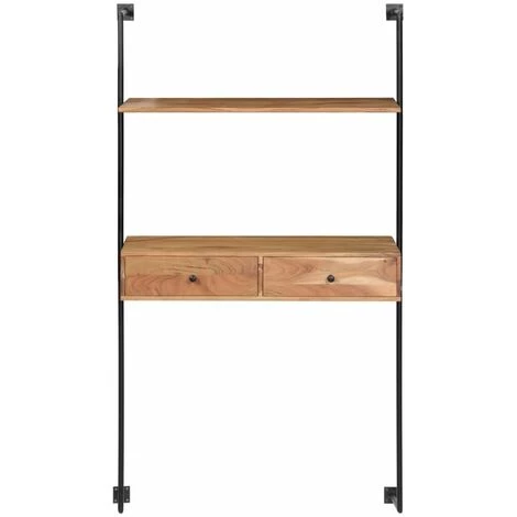 Ce bureau mural dégage un charme attrayant. Ce sera un véritable point central de votre intérieur. Le bureau mural est fabriqué en bois d’acacia solide et a reçu un fini naturel qui lui confère une belle apparence. Cette table à écrire est entièrement faite à la main et les grains de bois raffinés rendent chaque meuble distinctif et légèrement différent l’un de l’autre. En outre, le savoir-faire parfait garantit que chaque étape du processus est réalisée avec le plus grand soin, qu’il s’agisse de polissage ou de laquage. Le fer enduit de poudre ajoute à la robustesse du bureau. En outre, ce bureau peut être connecté au mur. Ce bureau en bois comprend 2 tiroirs et 1 étagère, offrant un espace commode pour ranger vos bloc-notes, vos livres et divers articles bien rangés. Remarque importante : les grains de bois varient d’une pièce à l’autre, rendant chaque pièce unique ; la livraison est aléatoire.