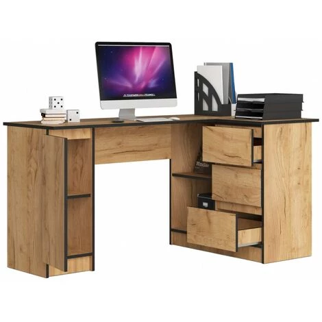 Avec ses trois tiroirs et son rangement pratique, ce meuble offre beaucoup d’espace à aménager. Conçu comme un bureau d’angle, il est extrêmement utile dans de petits espaces, et les tiroirs ajoutent de l’élégance et du style à l’ensemble du design. La profondeur du bureau convient aussi bien aux propriétaires d’ordinateurs portables que d’ordinateurs de bureau avec un moniteur dédié.