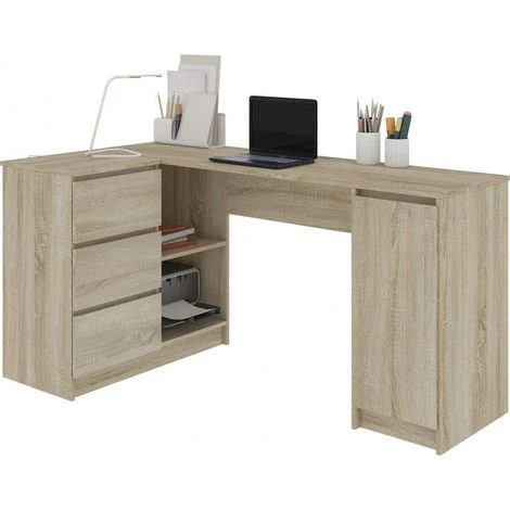Le bureau d’angle BALAUR vous offre un espace de travail idéal pour votre bureau ou chambre de votre enfant. Ce meuble offre de nombreux espaces de rangement afin de bien organiser et ranger ses affaires, garder à portée de main les fournitures scolaires dans le tiroir, et trier des livres, des classeurs et autres documents sur les étagères et dans les niches et tiroirs profonds.