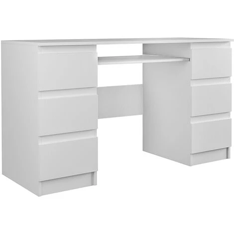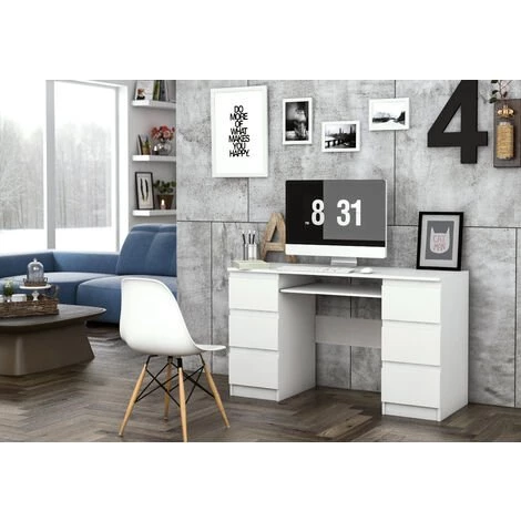 Le bureau informatique contemporain BARI sera parfait ainsi pour la maison que le bureau pour vos longues journées de travail. Peu encombrant, mais ultra fonctionnel grâce à ses nombreux rangements, il vous offrira un bel et confortable espace de travail. Sa structure est fabriquée en panneaux de particules mélaminés de première qualité. Il se compose de 6 grands tiroirs et d’un support coulissant pour clavier. Avec son design fonctionnel et moderne, il s’adaptera dans n’importe quel style.