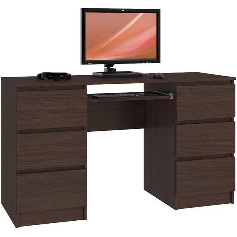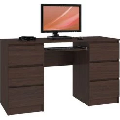 Bureau informatique GOYA est conçu pour les personnes qui ont besoin d’un endroit pour travailler, étudier ou jouer. Il est ultra fonctionnel grâce à ses nombreux rangements – six tiroirs profonds et support coulissant pour clavier. Sa structure est fabriquée en panneaux de particules mélaminés de première qualité. Grâce à son design fonctionnel et moderne il s’adaptera dans n’importe quel style