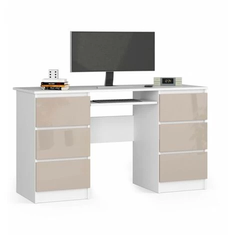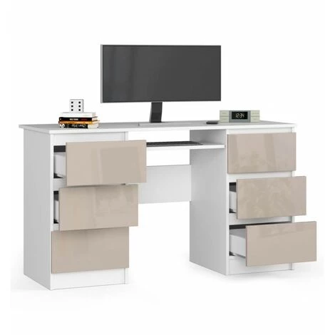 Le bureau présenté dispose de 6 tiroirs de grande capacité et est réalisé en matériaux résistants à l’abrasion, grâce auxquels il ne perd pas son aspect esthétique, même s’il est fréquemment utilisé. En outre, tous les bords sont protégés contre les dommages mécaniques causés, par exemple, par un choc contre une chaise, grâce aux bordures en ABS. Grâce à cela, le bureau peut servir son propriétaire pendant longtemps.