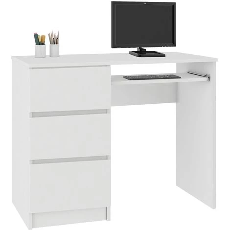Avec le bureau MIR organisation et rangement sont au rendez-vous. Il se distingue par ses lignes sobres et capacité de rangement étonnante. Le caisson avec les tiroirs est situé de côté gauche