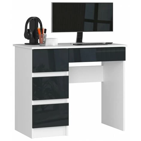 Le bureau est doté de quatre tiroirs qui vous offrent un grand espace libre pour ranger et garder à portée de main les objets et documents importants. Le déplacement des tiroirs est possible grâce aux glissières à rouleaux métalliques. Le matériau de base est le panneau stratifié. Grâce à sa haute qualité, il rend le mobilier résistant à l’abrasion. Les bords visibles du meuble sont protégés contre les dommages par des bordures en ABS.