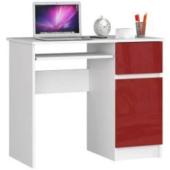 Le bureau est doté d’un tiroir et d’une armoire de grande capacité, ce qui nous donne beaucoup d’espace de rangement. Le matériau de base est le panneau stratifié. Grâce à sa haute qualité, il rend le mobilier résistant à l’abrasion. Les bords visibles du meuble sont protégés contre les dommages par des bordures en ABS.