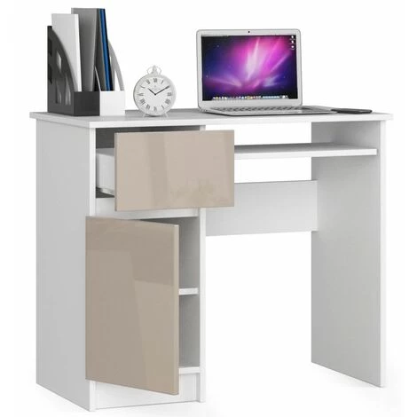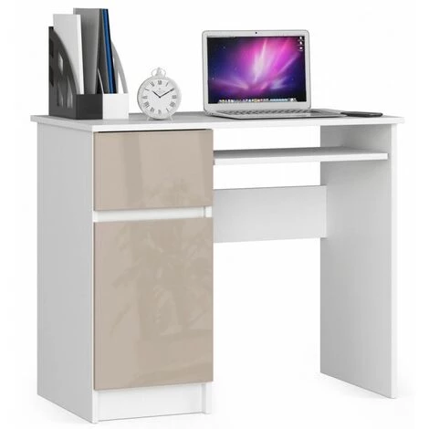 Le bureau est doté d’un tiroir et d’une armoire de grande capacité, ce qui nous donne beaucoup d’espace de rangement. Le matériau de base est le panneau stratifié. Grâce à sa haute qualité, il rend le mobilier résistant à l’abrasion. Les bords visibles du meuble sont protégés contre les dommages par des bordures en ABS.