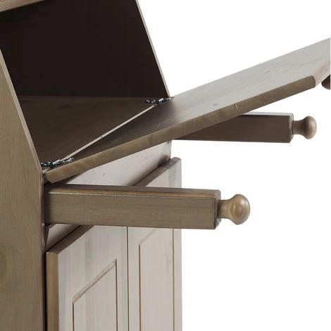 – Le secrétaire est fabriqué en pin massif, recouvert d’une lasure de couleur taupe.