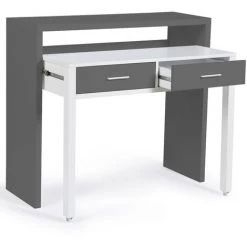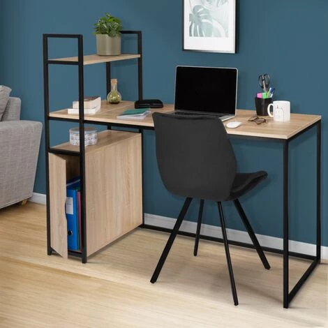 Descriptif du bureau bibliothèque DETROIT avec placard design industrielLe design du bureau style industriel s’inspire des usines et de leurs ateliers. Les lignes sobres et le style épuré du bureau bibliothèque DETROIT donneront à votre intérieur un aspect loft du meilleur effet. Avec ses coloris naturels et ses matériaux bruts, votre bureau trouvera facilement sa place chez vous car vous pourrez l’intégrer à différents styles d’intérieurs en renforçant le côté loft ou au contraire en donnant un peu de chaleur avec son design.Ce bureau bois métal industriel est doté d’un long plateau très pratique. Il est idéal pour travailler confortablement, disposer vos pots à crayons, trier vos documents sans gêne et installer votre poste d’ordinateur sur le large espace de travail. Parfait pour vos journées de télétravail et votre suivi administratif !Fonctionnel, il dispose de nombreux espaces de rangement ! Sur l’étagère supérieure et la niche sous plateau, vous pourrez placer livres, fournitures, petite plante ou encore objets de décoration et ainsi laisser libre votre espace de travail sur le bureau. Son placard, doté d’une poignée à encoche demi-lune pratique et discrète, offre quant à lui un espace fermé où stocker classeurs, boîtes de rangement ou matériel encombrant.Les différents plateaux en bois (PB épaisseur 1,5 cm) sont soutenus par une structure métallique qui assure au bureau solidité et stabilité au quotidien.Pratique et déco, ce meuble aux proportions généreuses modernisera votre salon ou votre bureau et facilitera le rangement de votre espace de travail !Dimensions du bureau bibliothèque XXL avec placardDimensions globales : Longueur 135 cm x largeur 64 cm x Hauteur 120 cmHauteur du plan de travail : 78 cmDimensions de l’étagère supérieure : Longueur 25 cm x Profondeur 60 cm(Etagère non réversible)Dimensions intérieures du placard : Longueur 26 cm x Profondeur 60 cm x Hauteur 52 cmEpaisseur du bois : 1,5 cmEpaisseur des tubes métal : 2 x 2 cmRetrouvez l’ensemble de nos bureaux ainsi que notre collection industrielle sur notre boutique en ligne !