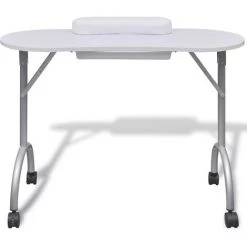 Cette table à manucure pliante, avec un coussin épais pour le poignet, convient à la fois pour un usage professionnel et personnel. Le coussin de poignet épais, recouvert de cuir artificiel, maintiendra votre main dans une position confortable pendant votre manucure. Le grand dessus de table offre suffisamment d’espace pour placer vos mains et tous les accessoires essentiels à la manucure. Le tiroir intégré vous permet de ranger des petits outils de manucure tels que coupe-ongles, vernis à ongles, limes à ongles, etc. Les 4 roulettes verrouillables sont conçues pour assurer la mobilité et un placement facile. Avec ses pieds en acier solide, notre table à manucure est construite pour durer. Elle est également facilement pliable pour économiser de l’espace. La livraison comprend également un sac de transport en polyester noir, ce qui rend la table très portable.