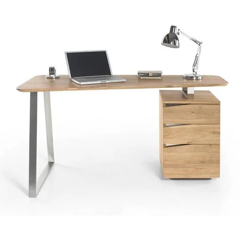 en métal brossé et ses 3 tiroirs en chêne plaqué si pratique au quotidien.