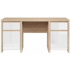 Magnifique Bureau en style industriel en chêne naturel et portes/tiroirs en blanc laqué brillant