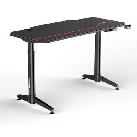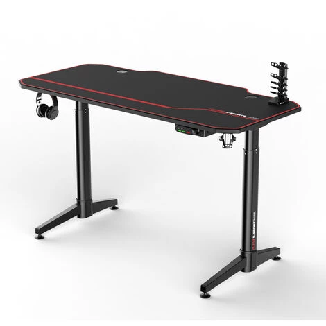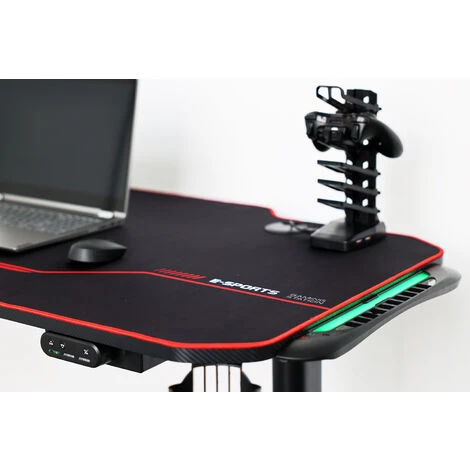 Avec ce bureau de gaming robuste, vous pouvez profiter de votre jeu préféré sans fin ! Le bureau est réglable électriquement en hauteur et est équipé d’un porte-gobelet, d’un crochet pour casque et d’un chemin de câbles.