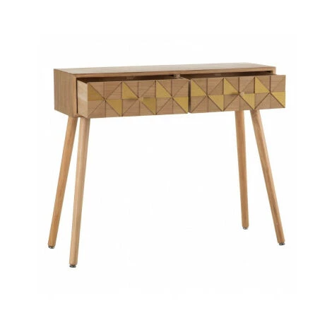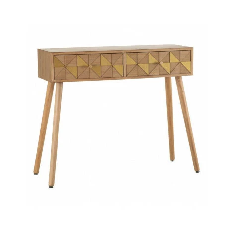 Console d’entrée en bois bicolore bois et or façon origami. 2 Tiroirs (42x14cm)