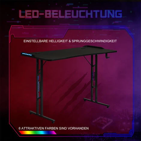 Belles lumières LED】 : Cette table de jeu est dotée de lumières LED GRB qui offrent 6 choix de couleurs. Vous pouvez régler la luminosité et la vitesse de saut de la lumière avec la télécommande fournie. L’éclairage variable et inhabituel vous donne une atmosphère animée lorsque vous pratiquez des sports électroniques.