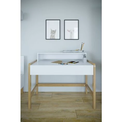 Le caractère industriel du bureau s’intègre parfaitement dans la chambre des jeunes. Une conception qui crée des conditions idéales pour le développement. Un grand tiroir intégré augmente la fonctionnalité et le confort. Le mobilier est spacieux et polyvalent, il est donc facile de l’adapter aux besoins changeants des enfants. Il est spacieux et polyvalent, ce qui le rend facile à adapter aux besoins changeants des enfants. Le matériau principal utilisé pour créer un meuble solide est un panneau de meuble stratifié certifié de 18 mm de finition blanche. L’utilisation de pieds surélevés en chêne laqué est une solution minimaliste donnant l’effet d’un intérieur cosy. Données techniques : Hauteur : 76 cm Largeur : 100 cm Profondeur : 60 cm * Une étagère supplémentaire au-dessus du bureau Victor est un article séparé dans l’offre de vente.