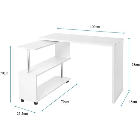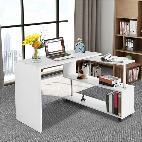 Espace de rangement suffisant : le bureau rotatif à 360 degrés peut être tourné à 360 degrés avec le plateau tournant. Il peut être placé en parallèle ou dans un coin, sûr et stable. Les grandes étagères de rangement doubles peuvent stocker des livres, des documents, des articles de bureau, etc.