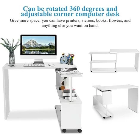 Design rotatif à 360 ° : ce bureau d’angle dispose de 4 roulettes flexibles, il peut pivoter à 360 degrés. Vous pouvez faire pivoter la forme dont vous avez besoin librement en fonction de l’espace réel.