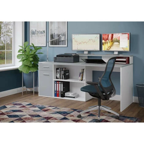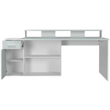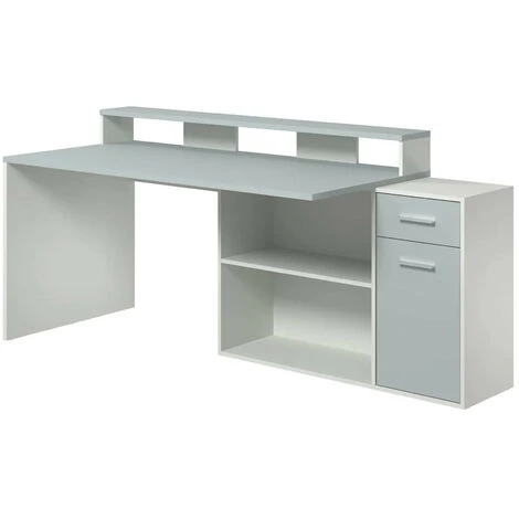 Découvrez ce bureau au style moderne, idéal pour les amoureux des jeux vidéos. Il est conçu en bois mélaminé blanc avec une façade grise. Cet aspect épuré rend ce meuble polyvalent, il s’adapte à tout type d’intérieur. En outre, son caisson peut être installé à gauche ou à droite selon le choix. Ses compartiments ouverts permettent d’organiser les divers accessoires et périphériques. Ce bureau au design cool sera parfait dans une chambre d’ado.Façade : panneaux de particules mélaminés grisCorps : panneaux de particules mélaminés blanc haute brillanceColoris : blanc et grisNombres de tiroirs : 1Nombres de porte : 1Nombre de compartiments ouverts : 2Poignée : plastique chroméDimensions : L 160 x P 115 x H 92 cmPoids : 61 kgPoids maximum supporté par l’étagère : 5 kgFabrication : AllemandeGarantie : 2 ansNous ne livrons pas en Corse.