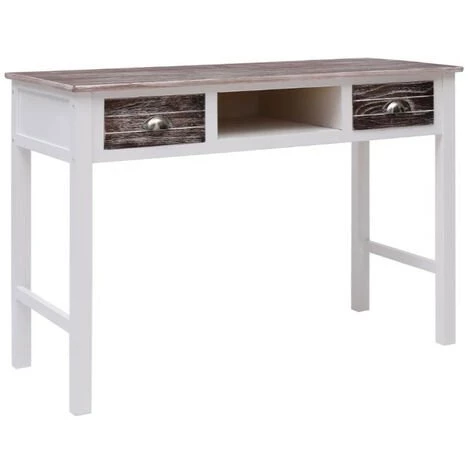 LES TENDANCES Bureau 2 Tiroirs Paulownia Blanc Et Foncé Amatar