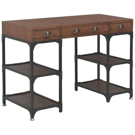 LES TENDANCES Bureau 3 Tiroirs Pin Massif Foncé Et Métal Noir Kako