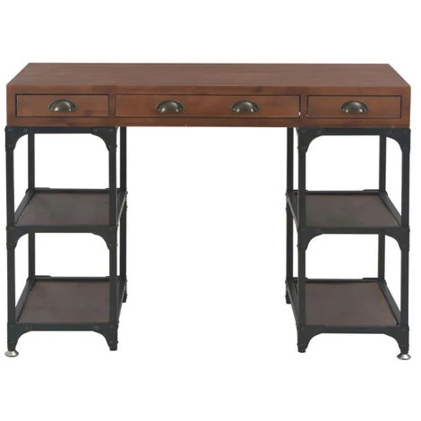 Ce bureau avec un style original est fabriqué avec un dessus en pin massif et structuré avec de l’acier galvanisé qui sera une touche de déco authentique pour votre pièce ou votre salon. Il est équipé de 3 tiroirs et de 4 étagères pour vous donner un espace de rangement. Il apportera une touche antique à votre intérieur grâce à son aspect et son design industriel.Dimensions : L 110 x H 78 x P 50 cmGarantie : 2 ansNous ne livrons pas en Corse.