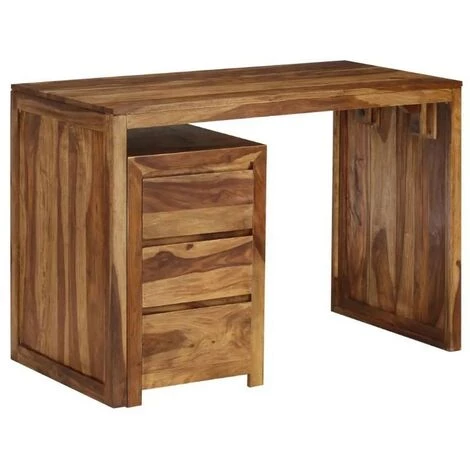 Ce bureau de la collection Sytranel en bois de sesham brut présente des grains de bois naturels. Il comprend une armoire qui peut se séparer du bureau avec trois tiroirs qui offrent un grand espace de rangement pour ranger divers petits objets. Sur le dessus vous pourrez posez votre ordinateur ou bien des objets décoratifs.Dimensions : L 110 x H 76 x P 55 cmGarantie : 2 ansNous ne livrons pas en Corse.