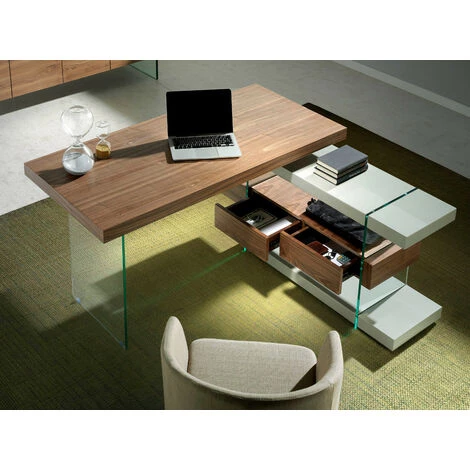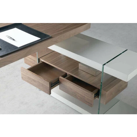 Ce bureau d’angle réversible contemporain haut de gamme de la collection Roma est le complément parfait pour votre espace. Vous pouvez choisir de positionner l’angle du bureau à gauche ou à droite selon vos souhaits. Sa structure en bois de noyer véritable est proposée avec des étagères en bois laqué le tout repose sur des pieds en verre trempé.Le bureau d’angle moderne est fabriqué en Europe avec des matériaux d’excellente qualité.L 140 x H 76 x P 65/127 cm – 90 KgStructure : Bois massif de noyer, bois laqué et verre trempéLivré par une société de transport de meubles sur prise de RDV à votre convenance3 Colis 165 x 72 x 13 / 74 x 51 x 15 / 108 x 42 x 34 cmPoids: 40 Kg / 25 Kg / 25 KgNous ne livrons pas en Corse.