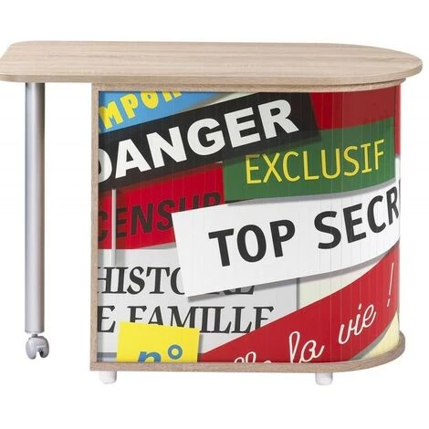 LES TENDANCES Bureau Avec Plateau Pivotant Et Rangement Bois Clair Imprimé Top Secret Kool 105 Cm
