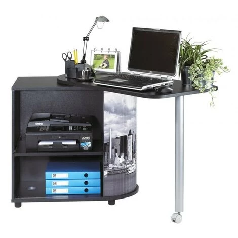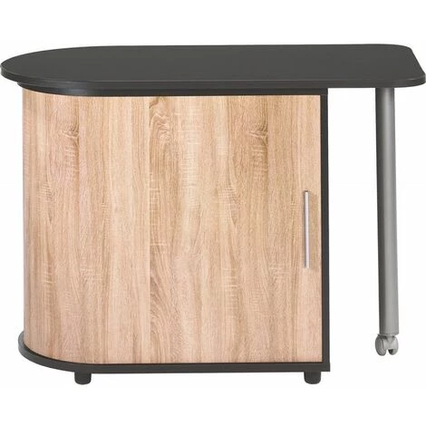 Pratique et fonctionnel, ce bureau pivotant noir et bois clair de la collection Cool au design moderne et épuré est 2 en 1. Il peut être utilisé comme meuble de cuisine.Matière : panneaux de particules mélaminés de 16 mm d’épaisseur, rideau en fibres moyenne densité recouvert d’un papier imprimé- 1 pied pivotant- 1 tablette écritoire- 4 pieds pvc- 1 roulette avec frein- Meuble : L 105 x H 75 x P 55 cm- Rangement : L 77 x H 72 x P 47 cm- Niche centrale : L 54 x H 64.5 x P 38 cm- Poids : 27 kg- Livré démonté (montage facile)- Garantie 2 ans- Meuble éco-conçu- Fabriqué en FranceNous ne livrons pas en Corse.
