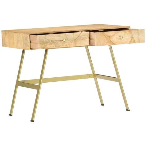 Ce bureau apportera une touche unique à votre intérieur grâce à son design industriel. Vous pouvez l’utiliser comme bureau d’ordinateur pour votre travail quotidien ou en tant que console. Le bureau est fabriqué en bois de manguier massif qui est stable, durable et beau. Les pieds en acier fort contribuent à la solidité du bureau ainsi qu’à son charme industriel. Chaque étape du processus est réalisée avec le plus grand soin, que ce soit le polissage, la peinture ou le laquage. De plus, le bureau a 2 tiroirs avec suffisamment d’espace pour garder vos articles importants organisés et à portée de main. Cet article est facile à assembler. Remarque importante : Les couleurs varient d’une pièce à l’autre, rendant chacun de nos bureaux unique. La livraison est aléatoire.Couleur : bois clair et laitonMatériau : bois de manguier massif et acierDimensions : 100 x 55 x 75 cm (L x l x H)Avec 2 tiroirsSurface polie, peinte et laquéeL’assemblage est requisNous ne livrons pas en Corse.