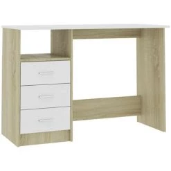 LES TENDANCES Bureau Avec Tiroirs Blanc Et Chêne Sonoma 110x50x76cm