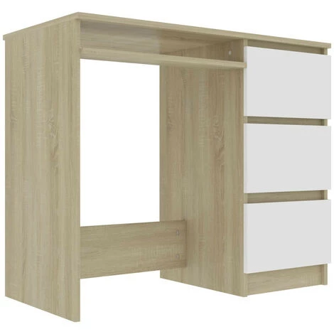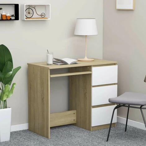 Ancrez votre espace de bureau ou votre espace de vie dans un style discret avec ce bureau soigné mais élégant ! Fabriqué en aggloméré de qualité, ce bureau garantit robustesse, durabilité et longue durée de vie. Avec sa longueur de 90 cm, ce bureau prend peu de place, ce qui convient aux chambres de jeunes et d’enfants, ou même peut être appliqué dans un coin. La conception du tiroir agrandit le stockage qui peut contenir vos dossiers, livres ou autres articles essentiels. De plus, le bureau est facile à entretenir et à nettoyer avec un chiffon humide. Cet article est facile à assembler.Couleur : Blanc et chêne sonomaMatériau : aggloméréDimensions totales : 90 x 45 x 76 cm (L x l x H)Avec 3 tiroirsFacile à entretenir et à nettoyer avec un chiffon humideL’assemblage est requisNous ne livrons pas en Corse.
