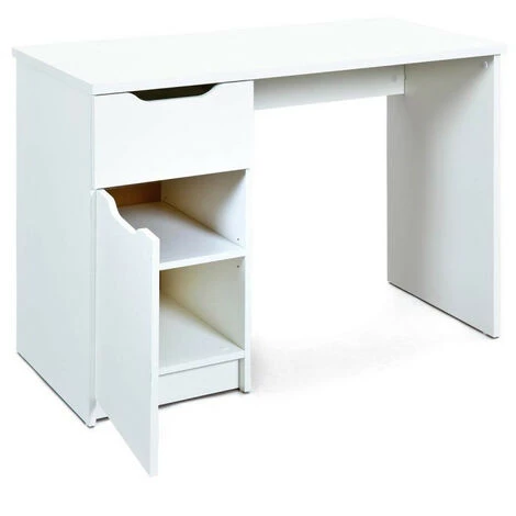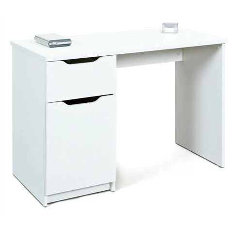 Ce bureau blanc 1 porte 1 tiroir bois sera parfait pour votre bureau, home office ou chambre. Il est composé d’une porte avec une étagère intérieure et d’un tiroir coulissant qui offrent une grande capacité de rangement. Les encoches à l’avant en guise de poignées sur la face avant sont pratiques pour l’ouverture des tiroirs. Matière Panneaux de particules mélaminéFinition mélaminéeL 115 x H 76 x P 55 cm – 35 kgAvec 1 porte et 1 tiroir coulissant sur des glissières métalliquesEncoches pratiques à l’avant des tiroirsLivré démonté avec notice de montageGarantie 2 ansNous ne livrons pas en Corse.