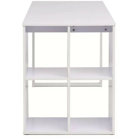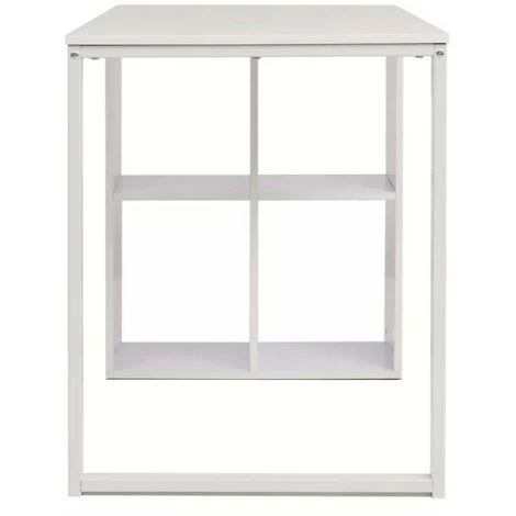 Ce bureau de la collection Brook est fabriqué en bois MDF blanc avec des pieds en métal blanc. Il dispose de quatre grands compartiments qui offrent suffisamment un grand espace de rangement pour vos fournitures, livres. Il convient aussi bien à un étudiant qu’à un adulte. Sa finition mélaminée fait de ce meuble une pièce intemporelle qui s’accordera avec tous les intérieurs. Dimensions : L 120 x H 75 x P 75 cmGarantie : 2 ansNous ne livrons pas en Corse.