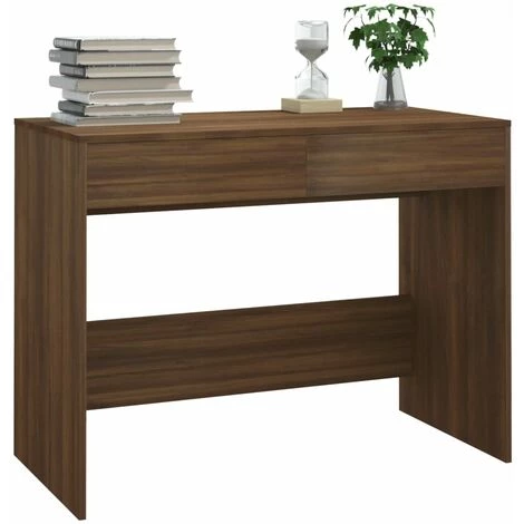 Ce bureau est un excellent choix pour la maison, le bureau, l’école, etc. Cette table de travail présente une construction robuste et stable. Le dessus de table est idéal pour placer un écran d’ordinateur, un clavier et une souris, ou un ordinateur portable pour écrire ou lire confortablement. Vous pouvez également ranger les stylos, livres et autres objets dans les 2 tiroirs inclus. La table est facile à nettoyer avec un chiffon humide.Couleur : chêne marronMatériau : aggloméréDimensions : 101 x 50 x 76,5 cm (L x l x H)L’assemblage est requisNous ne livrons pas en Corse.
