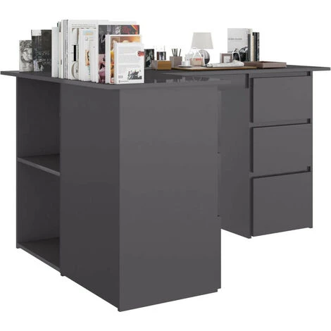 LES TENDANCES Bureau D’angle Gris Brillant 145x100x76 Cm