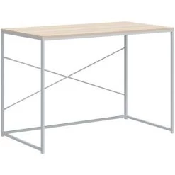 LES TENDANCES Bureau D’ordinateur Blanc Et Chêne 110x60x70 Cm