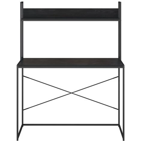Comme tous les meilleurs designs, ce bureau d’ordinateur simple mais élégant est propre, compact et sûr. Il offre un grand espace de travail, ce qui en fait un meuble très pratique et polyvalent à utiliser à la maison ou au bureau. Le bureau est conçu avec une étagère pour organiser vos livres ou pour afficher des objets de décoration. Fabriqué en métal enduit de poudre et en aggloméré, le bureau est extrêmement stable, solide et durable. De plus, le cadre en métal confère au bureau un style industriel, apportant une touche de charme unique à votre intérieur. Améliorez votre intérieur avec ce bureau moderne !Couleur : noirMatériau : aggloméré, métal enduit de poudreDimensions totales : 110 x 60 x 138 cm (l x P x H)L’assemblage est requisNous ne livrons pas en Corse.