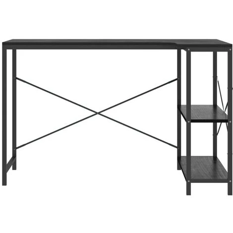 Comme tous les meilleurs designs, ce bureau d’ordinateur simple mais élégant est propre, compact et sûr. Il offre un grand espace de travail, ce qui en fait un meuble très pratique et polyvalent à utiliser à la maison ou au bureau. Le bureau en forme de L est conçu avec deux étagères pour organiser vos livres, dossiers, documents ou pour afficher des objets de décoration. Fabriqué en métal enduit de poudre et en aggloméré, le bureau est extrêmement stable, solide et durable. De plus, le cadre en métal confère au bureau un style industriel, apportant une touche de charme unique à votre intérieur. Améliorez votre intérieur avec ce bureau moderne !Couleur : noirMatériau : aggloméré, métal enduit de poudreDimensions totales : 110 x 72 x 70 cm (l x P x H)L’assemblage est requisNous ne livrons pas en Corse.