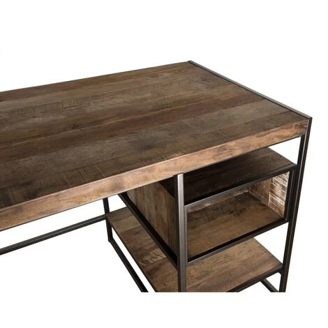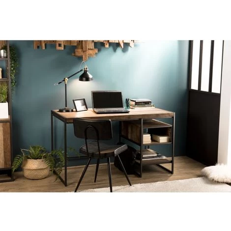 Bureau marron 1 niche et 1 tablette Teck recyclé Acacia Mahogany recyclé et métal noir. Dimensions : 140 x 70 x 78,5 cm. Article en Teck recyclé et Acacia, Mahogany recyclé. Cet article est composé de bois recyclé ! Le bois recyclé est un bois récupéré de vieilles charpentes, de coques de bateaux ou tout bois de récupération ayant déjà eu une longue vie. C’est ce qui lui donne cet aspect vieilli et authentique avec ses imperfections qui font tout son charme. Acquérir du bois recyclé est une initiative écoresponsable qui permet de lutter contre la déforestation. Meuble monté