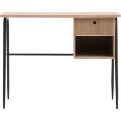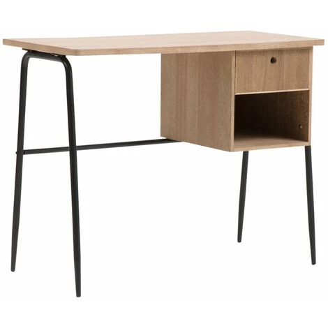 Ce bureau deviendra rapidement votre nouvel allié pour rester organisé et concentré lors de vos sessions de travail. Ni trop grand, ni trop petit, il vous propose des dimensions parfaites qui vous permettront d’occuper votre pièce. Son plateau en bois est durable et résistant. Sa structure en métal noir est marquée et affiche un caractère industriel que l’on aime beaucoup. Il vous promet une stabilité optimale. Niveau entretien, un simple chiffon humide suffit.
