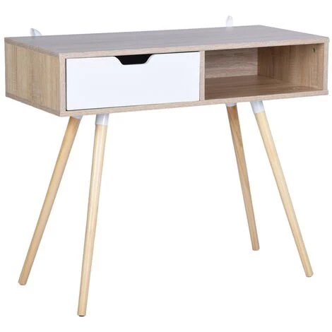 Le bureau 1 tiroir Ultron. Lignes sobres et contemporaines pour cet ¨¦l¨¦gant bureau de style scandinave qui associe ¨¤ merveille blanc et bois.
