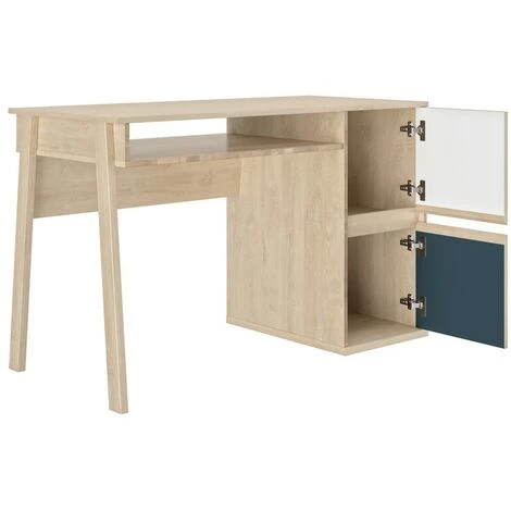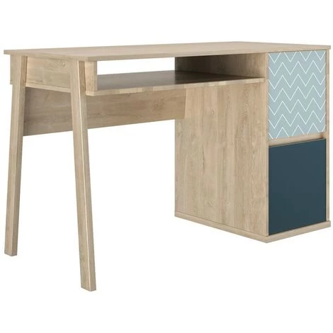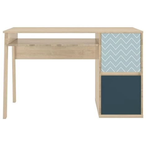 - STRUCTURE : Panneaux de particules finition décor chêne blond, uni bleu cobalt et sérigraphie « chevrons bleu océan »