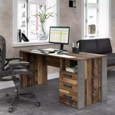 Apportez un style rustique à votre séjour ou dans votre bureau ! Ce bureau est le résultat de l’association d’un design moderne et d’un effet de bois vieilli vintage, ses piètements effet béton gris apportent une touche d’élégance. Pratique il vous permettra également de ranger vos affaires à l’abri dans ses tiroirs montés sur des rails métalliques, ou dans son compartiment ouvert qui vous sera plus pratique et accessible ! Vous pourrez installer ce bureau dans une chambre d’enfant, il installera une ambiance chaleureuse et apaisante.