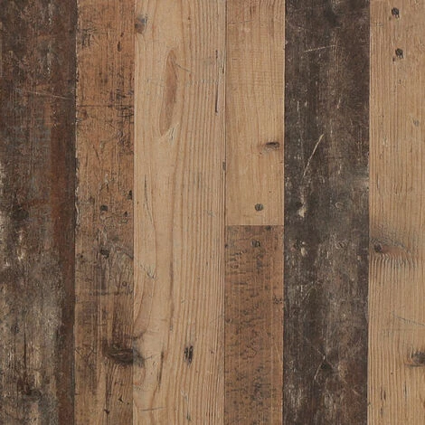 - COMPOSITION : Structure et plateau en panneaux de particules 15 mm et 32 mm d’épaisseur. Revêtement papier décor bois vintage et béton gris foncé. Panneaux arrière en HDF 2mm . Poignées en plastique noir.