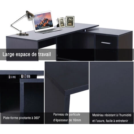 Le bureau informatique Corner de Mycocooning est assez grand pour accueillir un ordinateur, une imprimante et d’autres périphériques. Une étagère de rangement sur 2 niveaux et un rangement latéral permettent d’y entreposer les livres, câbles et autres fournitures. La grande qualité de ce bureau, c’est qu’il est amovible. On peut bouger la partie plateau et la partie étagère pour en faire un meuble d’angle, déplier l’ensemble en un long meuble droit ou encore réunir le tout dans un ensemble compact qui ne prend que peu de place.