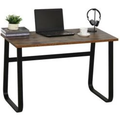 – Bureau design industriel mélant avec élégance le métal noir (châssis et pieds) et le bois coloris boisé (plateau en panneaux de particules classe E1)