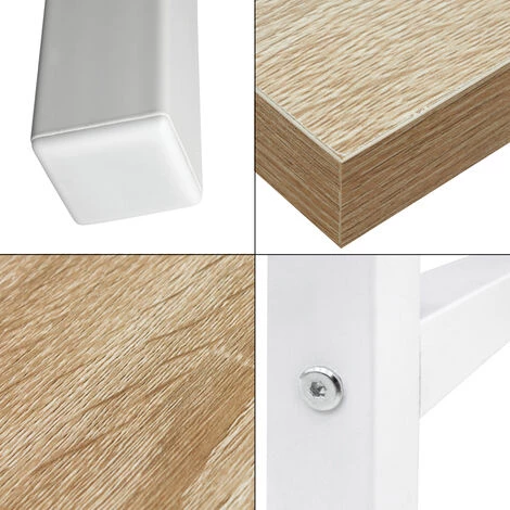 Dans le monde d’aujourd’hui, le bureau est plus qu’un simple meuble fonctionnel sur le lieu de travail. Notre bureau ML-Design se présente comme un bel ajout à votre décoration intérieure. Le design simple et moderne offre un grand espace pour l’ordinateur, l’écran, l’imprimante, la papeterie ou les documents. Il y a également un espace pratique sous le plateau de table pour un conteneur roulant. Le plateau est fabriqué en bois de 2,5 cm d’épaisseur, ce qui le rend extrêmement stable, respectueux de l’environnement, résistant aux rayures, imperméable et aux couleurs. Un design moderne de texture de bois pour créer une maison naturelle et originale pour vous. Apportez une touche de modernité à votre maison ! Le bureau est simple et élégant et s’intègre parfaitement dans n’importe quelle pièce de votre maison. Le cadre en métal et les pieds en forme de rail assurent une stabilité solide. La surface stratifiée résistante aux rayures protège la surface du bureau de l’usure quotidienne. Personnalisez votre bureau à domicile en fonction de vos souhaits et de vos idées.